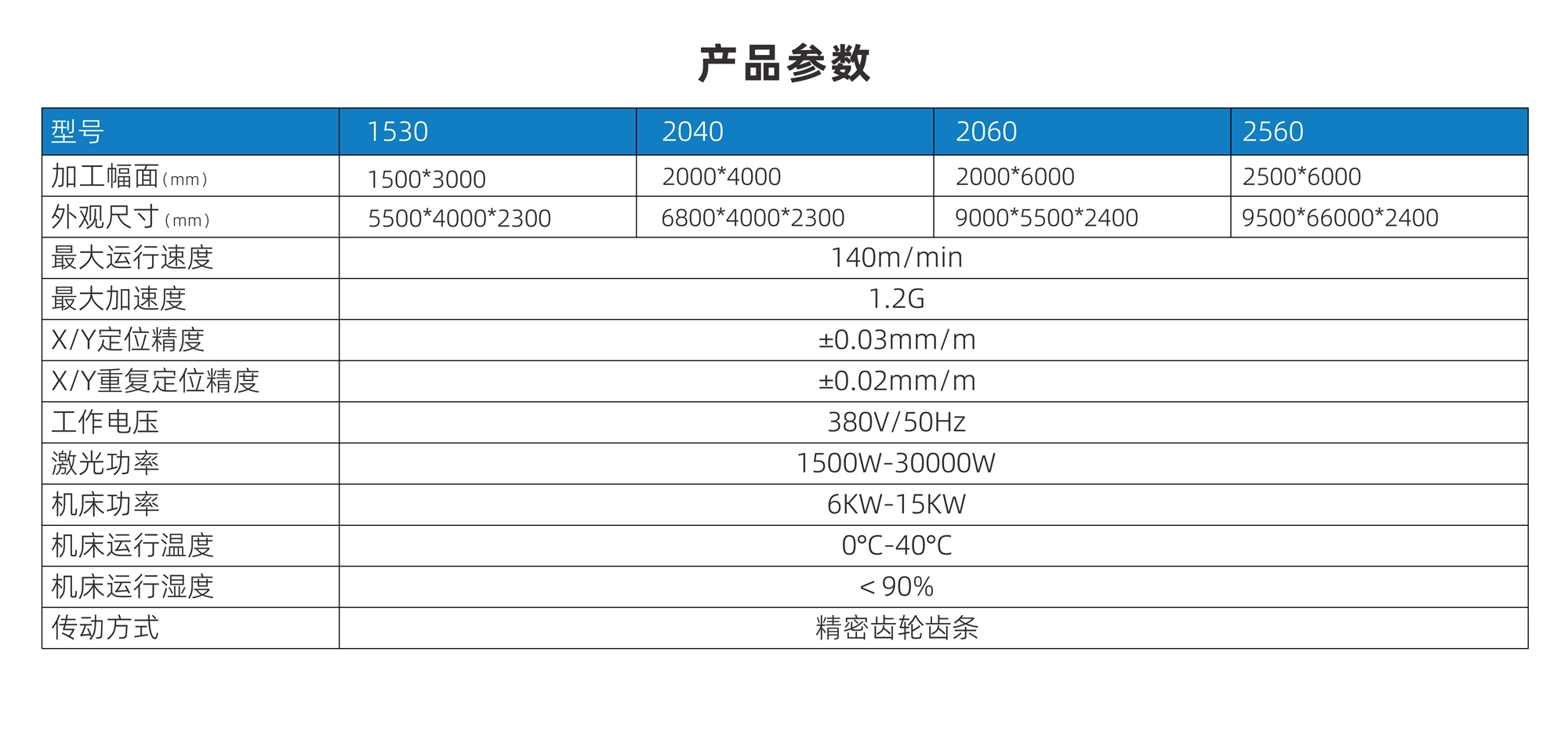 | 加工幅面(mm) | 1500*3000 | 2000*4000 | 2000*6000 | 2500*6000 |